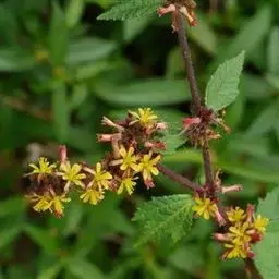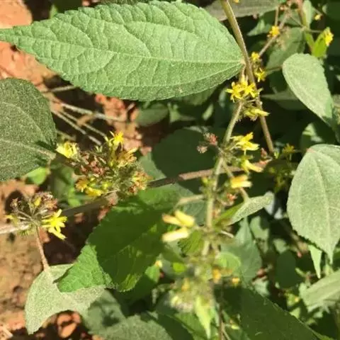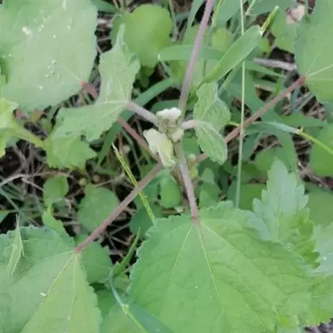 单毛刺蒴麻,一年生草本或半灌木,叶纸质,卵形或卵状披针形,先端尾状渐尖,基部圆形或微心形,两面有稀疏单长毛,基出脉3-5条。聚伞花序腋生,花序柄极短,花瓣比萼片稍短,黄色。蒴果扁球形,无毛,具刺,刺先端弯勾,基部有毛。花期秋季。
