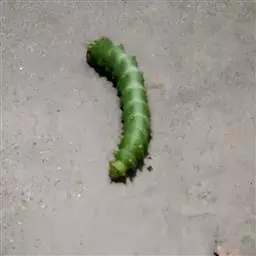 幼虫体长约 9 至 12 厘米。体型肥大,体色有黄、绿、褐、灰等多种,体侧有斜向的斑纹(但会因个体差异而有所不同)。