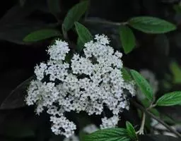 皱叶荚蒾是五福花科荚蒾属的小乔木植物。植株高达4米;叶柄及花序均被由黄白色、黄褐色或红褐色簇状毛组成的厚绒毛;小枝粗壮,稍有棱角;叶革质,卵状矩圆形至卵状披针形;聚伞花序稠密,总花梗粗,四角状,花冠呈现白色,雄蕊高出花冠;果实红色,后变黑色,宽椭圆形,无毛;花期为4-5月;果熟期为9-10月。皱叶荚蒾原产于中国,分布于陕西、湖北、四川及贵州等地。生长于山坡林下或灌丛中,海拔800-2400米。其性喜好阳光,耐半阴,喜温暖,有一定的耐寒性,喜湿润,不耐涝,耐中度盐碱,但在深厚肥沃、排水良好的中性或微酸性沙质土壤中生长更好,耐修剪,生长缓慢。其一般的繁殖方式为播种和扦插繁殖。皱叶荚蒾味苦,性凉。具有清热解毒、凉血止血的功效。可用于湿热痢疾、痈疽疮疖、咳血、吐血、便血、跌打损伤等疾病。皱叶荚蒾给人以郁郁葱葱的景象,全年观叶、春季观花