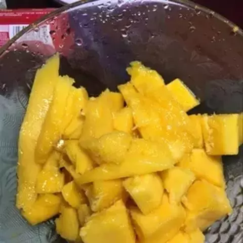 有别于芒果冰沙,芒果冰里的芒果通常是切成小块状。