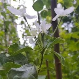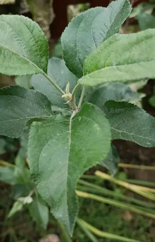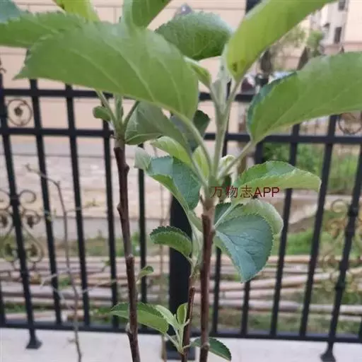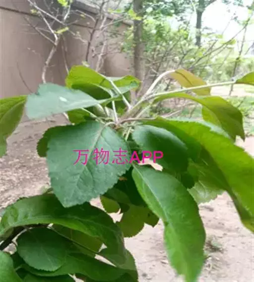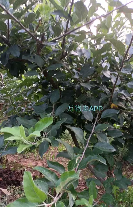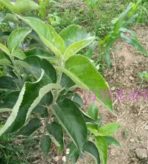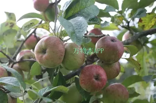 蔷薇科 ,苹果 属落叶乔木,高达15米,树干灰褐色,老皮有不规则的纵裂或片状剥落,小枝幼时密生绒毛,后变光滑,紫褐色。叶序为单叶互生,椭圆形到卵形,长4.9~10厘米,先端尖,缘有圆钝锯齿,幼时两面有毛,后表面光滑,暗绿色。花白色带红晕,径3~5厘米,花梗与花萼均具有灰白色绒毛,萼叶长尖,宿存,雄蕊20,花柱5,大多数品种自花不育,需种植授粉树。果为略扁之球形,径5厘米以 上,两端均凹陷,端部常有棱脊。花期4~6月,果期7~11月果熟。