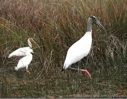 粉红琵鹭:体高87厘米,翼展127厘米,体重1300克,寿命10年。是一种大型涉禽。脚很长,喙长而…