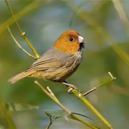 文须雀,别称髭雀、文须山雀,属雀形目、鹆鸟科、画眉亚科。眼先及髭纹黑色,头顶暗灰,…