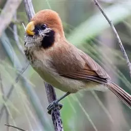白眶鸦雀是莺科、鸦雀属小型鸟类,体长12-14厘米。嘴黄色、短而粗厚,头顶至后颈褐色沾棕具白色眼圈,…
