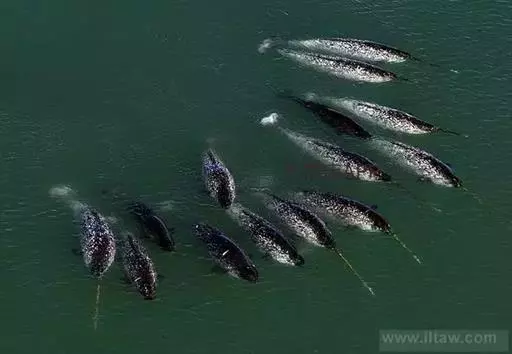 传统观点认为一角鲸是深水鲸种,实际上它们在靠近北极浮冰带的海洋各层深度觅食。