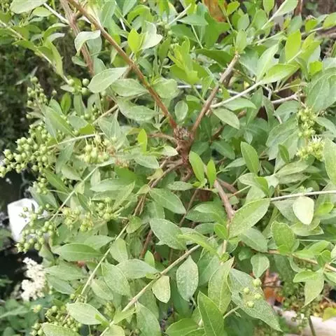 落叶灌木,高2-6米;幼枝灰色或褐色,老枝粗壮,侧生棘刺较长而纤细,常不分枝。叶互生,长40-60毫米,宽5-8毫米,中部以上最宽,顶端钝形,上面绿色或稍带银白色。果实圆形或近圆形,长6-9毫米,直径5-8毫米,果梗长1-3.5毫米,种子椭圆形,长3.8-5毫米。