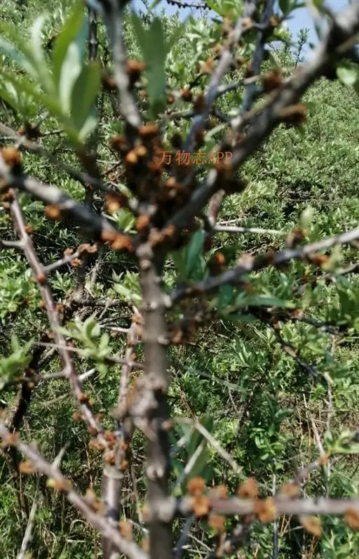落叶灌木或乔木,高l.5米,生长在高山沟谷中可达18米,棘刺较多,粗壮,顶生或侧生;嫩枝褐绿色,密被银白色而带褐色鳞片或有时具白色星状柔毛,老枝灰黑色,粗糙;芽大,金黄色或锈色。