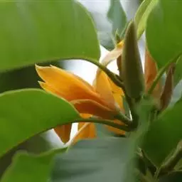 金叶含笑(学名:Michelia foveolata Merr. ex Dandy)是木兰科,含笑属小乔木,高可达8米。芽圆柱形或狭卵形,嫩枝被淡黄色绒毛,老枝无毛,叶革质,长圆形或卵状长圆形,先端渐尖或急尖,基部宽楔形或近圆钝,托叶与叶柄离生,无托叶痕。花梗密被淡黄色长绒毛;花黄色,花被片长圆形或倒卵状长圆形,雌蕊群圆柱形,雌蕊群心皮卵圆形,花柱褐色。聚合果圆柱形,蓇葖长圆体形,3月开花,11月结果。
