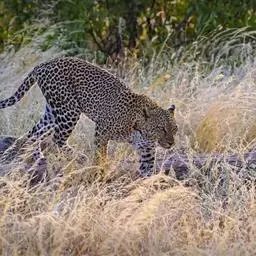 花豹是大型肉食性动物,体形似虎,但明显较小;头小尾长,四肢短健;毛被黄色,满布黑色环斑;头部的斑点…
