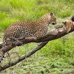 在自然界猎豹常常被一些体型比较大的猫科动物,比如说狮子打败,或者有可能被狮子咬死吃掉。幼豹的成活率很低,三分之二的幼豹在一岁前就被狮子鬣狗等咬死或因食物不足而饿死。