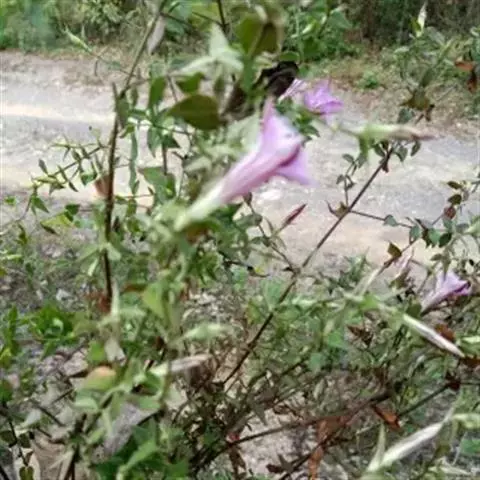 花单生枝顶,基部包于上部叶丛中;无花梗;花萼筒白色膜质,有时上部带紫红色,倒锥状筒形,长1.2-1.7厘米,裂片稍不整齐,椭圆形,长7-17毫米,先端钝,具短小尖头,边缘白色软骨质,具乳突,中脉白色软骨质,在背面突起,光滑或具乳突,弯缺宽,截形;花冠上部蓝色或蓝紫色,下部黄白色,具蓝灰色宽条纹,筒状钟形,长4-6厘米,裂片卵圆形或宽卵形,长5-6毫米,先端钝圆,具短小尖头,全缘,褶整齐,卵形,长2.5-3毫米,先端钝,全缘;雄蕊着生于冠筒中部,整齐,花丝钻形,长15-17毫米,花药狭矩圆形,长4-5毫米;子房披针形,长1.2-1.5厘米,先端渐尖,基部钝,柄粗壮,长1.7-2厘米,花柱线形,长1-1.3厘米,柱头2裂,裂片钝三角形。