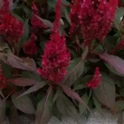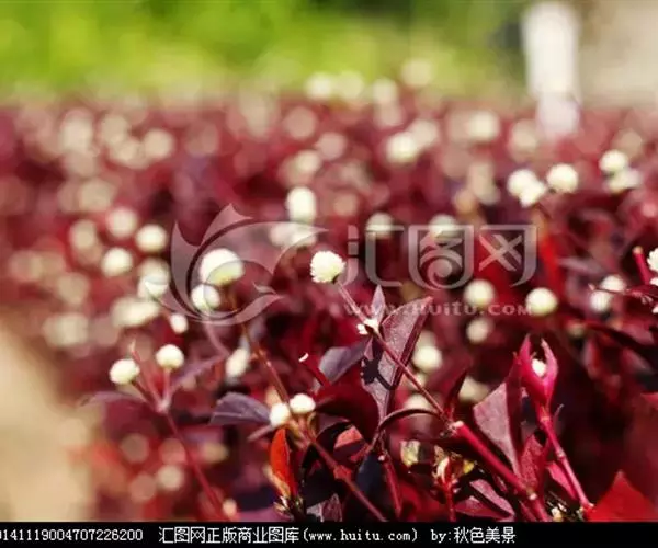 多年生草本,高度×冠幅:30cm—60cm×30—50cm。质感中至细。茎叶铜红色,冬季开花,花乳白色,小球形,酷似千日红。