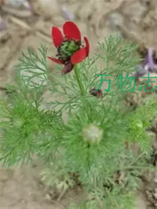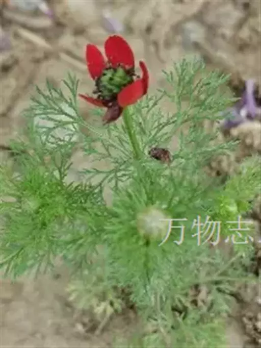 小侧金盏花(Adonis aestivalis L. var. parviflora M.Bieb.)与夏侧金盏花的区别:花梗较长,在开花时长度超过茎顶部叶;花较小,花瓣长4-5.5毫米。分布于亚洲西部和欧洲;在中国分布于西藏西南部(吉隆)和新疆西部。生长于山坡草地。 小侧金盏花