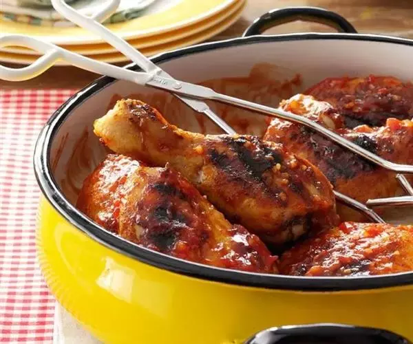 5分钟左右取出,再次均匀的涂抹酱汁后继续烤5分钟后取出,盛入盘中,撒上熟芝麻即可。
