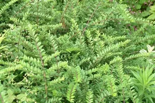 经炼苗的苗床实行全光照管理,及时浇水和喷洒液肥,喷洒多菌灵500倍液,预防病害。采用128孔的穴盘或4厘米×5厘米(深)的网袋,经3.5个月的苗期管理,苗高5厘米,根系完整,植株健壮,无病虫害,成品率90%。再将小苗移栽到12厘米×10厘米(深)的容器中,经5个月苗期管理,不用修剪,培养成地被苗,苗高20厘米,冠幅25厘米,根系完整,冠形紧凑,可提供园林工程和水土保持建设。