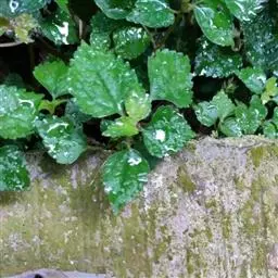 泡叶冷水花 Wedd.Pilea nummulariifollia)是尊麻科冷水花属的多年生常绿草本植物。匍匐蔓生,分枝细而多,全株被短而细的绒毛。叶对生,圆形,质薄,叶缘具半圆形锯齿,脉间叶肉凸起,看上去成泡状,且具短粗毛,具托叶,薄、半透明状,花小不明显。花期为秋季。泡叶冷水花原产热带美洲,西印度群岛及巴拿马等地,在中国南方多见;喜好半日照照耀生长,适合温度为20℃-28℃,喜富含腐殖质的壤土,且喜高温多湿,在南方温暖地区,只要湿度够,即生长良好;繁殖方式一般以扦插繁殖为主,除冬季外,随时可进行。泡叶冷水花叶色青翠,多作吊盆种植,枝蔓下垂十分美观。也可作地被种植;泡叶冷水花吸收二氧化碳的能力比花卉高2.5倍,并且还能消除室内装材料和家具散发的甲醛和二氧化硫等害气体,能吸收净化烹饪时散发出来油烟,迅速净化居室空气,具有抗污吸毒的功能,是经济实惠的天然空气清新剂,被称之为“抗污新星;还是良好的切叶材料。