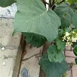 小乔木,高8-12米。叶三角状卵形或卵状长圆形,长6-15厘米,宽达8厘米,顶端长渐尖,基部截形,阔楔形或心形,有时基部具有1-2牙齿,叶面深绿色,叶背无毛;叶柄长2-8厘米。顶生伞房状总状花序,有花2-12朵。花萼蕾时圆球形,2唇开裂,顶端有;2尖齿。