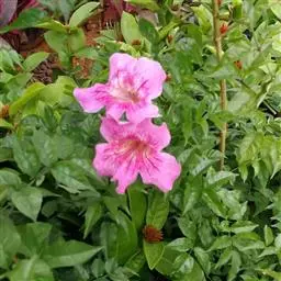 花冠淡红色,内面具有2黄色条纹及暗紫色斑点,长3-3.5厘米。蒴果线形,长25-45厘米,宽约6毫米。种子狭长椭圆形,长约1厘米,宽约2厘米,两端生长毛。花期5-6月,果期6-10月。