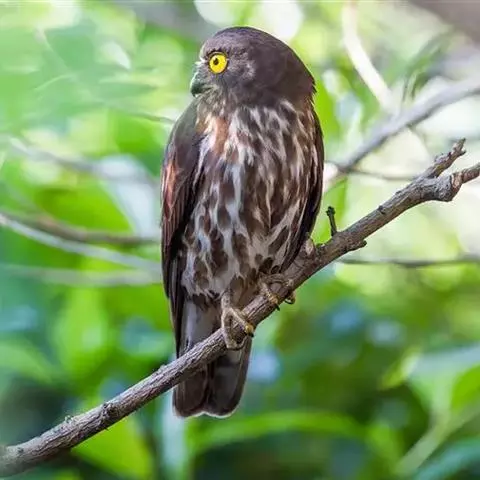 横斑腹小鸮:是鸱鸮科、小鸮属的一种鸟类。体长20厘米左右。面盘不明显,没有耳羽簇,皱领也不显著。…