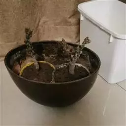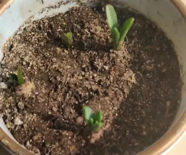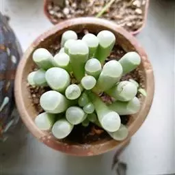 休眠中的碧光环如图所示,当秋天慢慢来临,温度降低到25℃,它们也就慢慢的苏醒了。这个时候可以浇透水,碧光环不怕水,土壤透气,干透浇透就可以的。碧光环的根系很发达,建议用深点盆养。