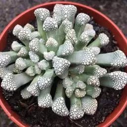 碧光环(学名:Monilaria obconica Ihlenf. & Joergens.)是番杏科,碧光环属多年生肉质草本,原生地位于南非。生长适温为15~25摄氏度,夏季温度超过35摄氏度时叶片慢慢枯萎,进入休眠;气温下降后,逐渐恢复浇水即可使其恢复生长。可通过播种和分株繁殖。