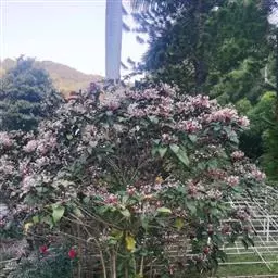 烟火树 Merr.)是唇形科、大青属常绿灌木或小乔木,株高可达4米。幼枝方形,墨绿色。叶对生,…