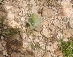 叶子表面宽厚,富肉质感且带有磨纱质感,看像石头质地;开红色小花,生于植株顶部,倒伞形密生,形状像花…
