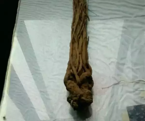 寄生根根上着生大小不等的锁阳芽体,初近球形,后变椭圆形或长柱形,径6-15毫米,具多数须根与脱落的鳞片叶。