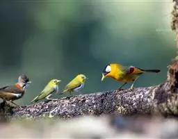 • 凤头雀嘴鹎:属小型鸟类,体长18-22厘米。嘴粗短、呈象牙色或乳黄色,前额和脸灰色,头顶黑色,…