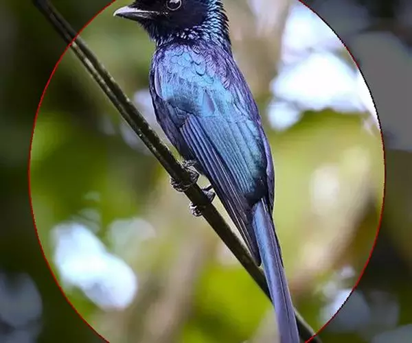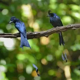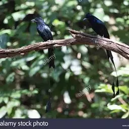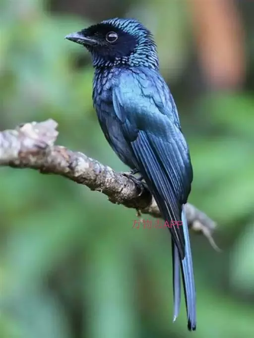 雌性成鸟体羽似雄鸟,仅金属闪光不甚显著;最外侧尾羽较雄鸟稍短。幼鸟的簇状额羽丛不发达;体羽微沾光泽;翅下覆羽及腋羽黑褐色,羽端白色斑大而显著;尾羽呈正常深叉羽端,最外侧一对尾羽不甚延长,羽干不裸出,无延伸的“盘状尾”。