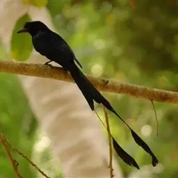 小盘尾(学名:Dicrurus remifer)是雀形目卷尾科的鸟类。体型较小,全长约48厘米。通体黑色,具金属光泽;嘴形强健,嘴峰稍曲,先端具钩;嘴基前额羽形成簇状绒黑羽丛;初级飞羽10枚,一般翅形长而稍尖;尾长而呈叉状;尾羽10枚,最外侧一对尾羽甚形延长,羽干部分裸出,其尾羽末端的内外翈呈彼此相称的“盘状尾”。跗蹠短而强健,前缘具盾状鳞。主要栖息于热带雨林,季雨林,低山丘陵和山脚平原地带的常绿阔叶林和次生林中,单个或成对活动,以蝗虫、蚱蜢等昆虫为食,也吃蜥蝎、蛙等小型脊椎动物。分布于喜马拉雅山南麓、缅甸、泰国、柬埔寨和中国。
