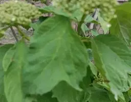 灌木或小乔木,高2~5m。幼枝紫褐色。叶对生,卵形、卵状长圆形或近菱形,长4~13cm。边缘有浅波状齿;叶柄长0.8~2.5cm。花序聚伞状复伞形;萼筒长约1.5mm,萼檐具5微齿;花冠白色,长约3mm,辐状。核果近球形,直径6~7mm,熟时红色,核扁,背具2、腹具1浅槽。