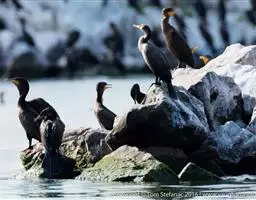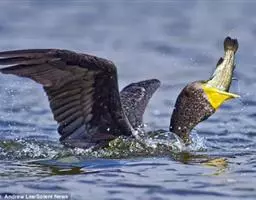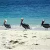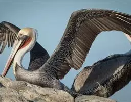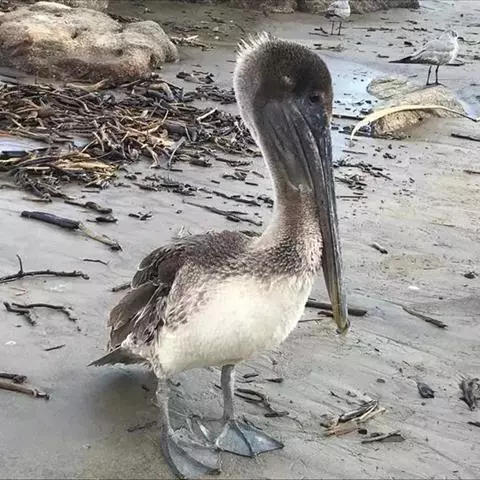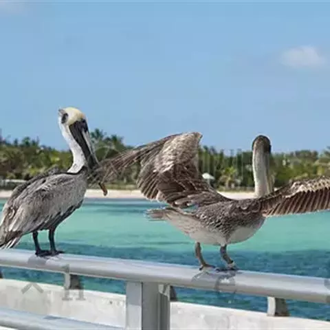 褐鹈鹕:是鹈鹕家族中体型最小的成员。体型粗大,体重6.5-9千克。嘴形宽大直长,上嘴尖端朝下弯曲,…