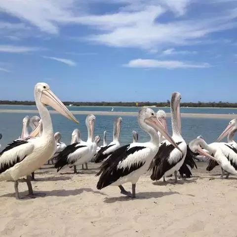 澳大利亚鹈鹕是一种大型涉禽,体重达13千克。生活于沿海及河川、湖泊等处。飞行力强而悠逸,常群飞群栖,…