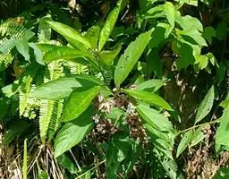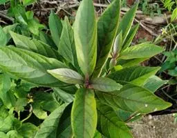 叶对生,长圆状披针形至椭圆形,长8-10厘米,宽3-5厘米,顶端锐尖,叶面较平展,叶色鲜绿至暗绿,网状脉下陷,叶边锯齿深而锐,叶柄长1-2厘米,被茸毛。