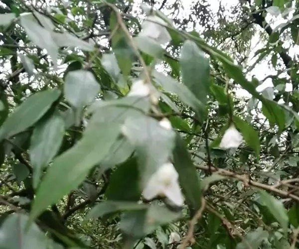 花单独顶生,花柄长3mm,有时稍长;苞片3~4片,卵形,长1.5~2.5mm,无毛;花萼杯状,长4~5mm,萼片5片,无毛,不等大,分离至基部,厚革质,阔卵形,先端略尖,薄膜质,花冠白色,长2~2.4mm,无毛;花瓣6~7片,基部连生约2~3mm,并与雄蕊的花丝贴生,外侧2~3片较小,革质,长1.2~1.5cm,内侧4或5片长达2.4cm;雄蕊比花瓣短,无毛,外轮雄蕊只在基部和花瓣合生,其余部分离生,花药背部着生;雌蕊长1.8~2.3cm,子房无毛;花柱长1.5~2cm,无毛,顶端3浅裂,裂片长约2mm。