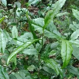 灌木,高达3m,嫩枝无毛,或最初开放的新枝有微毛,很快变秃净。叶革质,卵状披针形或椭圆形,长5~8cm,宽1.5~2.5cm,先端渐尖至尾状渐尖,基部楔形或略圆,上面干后黄绿色,发亮,下面浅绿色,无毛;侧脉6~7对,在上面略下陷,在下面不明显;边缘密具细锯齿,齿刻相隔1~1.5mm,叶柄长3~5mm,略有残留短毛。
