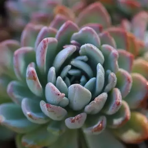 艾格尼丝并没有什么特别明显的休眠期喜水性之类的,艾格尼斯玫瑰为景天科拟石莲属多肉植物,其叶片圆润,厚实,叶缘为红色,株型紧凑。