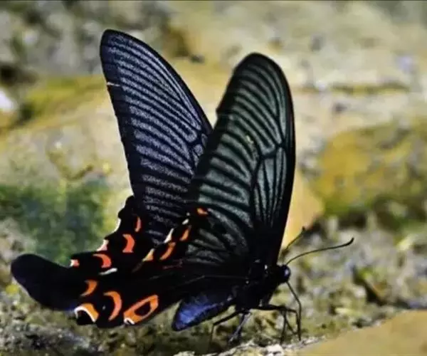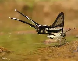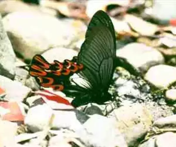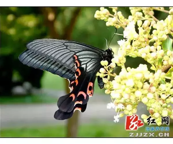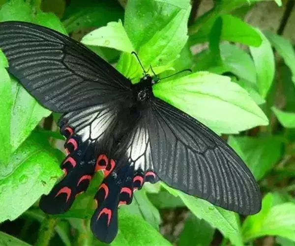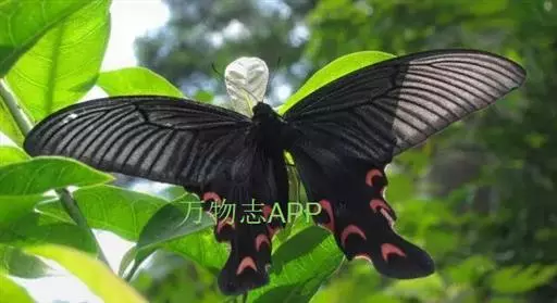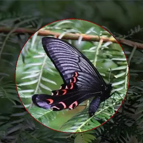 宽尾凤蝶外观特征 展翅宽100~110mm。下翅中央具大块的白斑,并有宽大的尾状突起,尾突中具两条翅脉通过;下翅外缘、内缘具明显的红色弦月纹。翅膀较雄虫稍宽广,其馀大致相同。生态习性 成虫出现于春、夏二季,生活在中、北部中海拔山区。喜好访花吸蜜,雄虫会在湿地吸水。为保育类昆虫。由于具有特别宽大的尾状突起,同时因二支翅脉贯穿其间,乃其他凤蝶所无之特征,因此举世闻名。