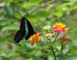 巴黎翠凤蝶中型凤蝶,躯体黑褐色,散布绿色亮鳞。后翅M3脉端有一明显叶状尾突。翅背面底色黑褐色,密布…