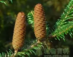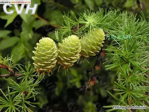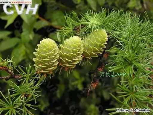乔木,高达30米,胸径1米;树皮暗褐色,纵裂粗糙,成鳞片状脱落;枝平展,树冠塔形;幼枝有淡褐色柔毛,后渐脱落,一年生长枝淡黄色或淡红褐色,有白粉,直径约1.5毫米,二、三年生枝灰褐色或黑褐色;短枝上历年叶枕形成的环痕特别明显,直径2~5毫米,顶端叶枕之间有疏生柔毛;冬芽紫褐色,顶芽近球形,基部芽鳞三角形,先端具长尖头,边缘有睫毛。叶倒披针状条形,长1.5~3.5厘米,宽1~2毫米,先端微尖或钝,上面稍平,下面中脉隆起,两面均有气孔线,尤以下面多而明显,通常5~8条。雄球花淡褐黄色,卵圆形,长6~8毫米,径约5毫采;雌球花紫红色,苞鳞反曲,有白粉,先端三裂,中裂急尖。球果卵圆形或圆柱状卵形,熟时黄褐色,长2~3.5厘米,径1.8~2.8厘米,种鳞46~65枚,上部边缘波状,显著地向外反曲,背面具褐色瘤状突起和短粗毛;中部种鳞卵状矩圆形或卵方形,长1.2~1.5厘米,宽约1厘米,基部较宽,先端平截微凹;苞鳞紫红色,窄矩圆形,长7~10毫米,基部稍宽,上部微窄,先端三裂,中肋延长成尾状长尖,不露出;种子倒卵圆形,长3~4毫米,径约2.5毫米,种翅上部三角状,中部较宽,种子连翅长1.1~1.4厘米。花期4~5月,球果10月成熟。