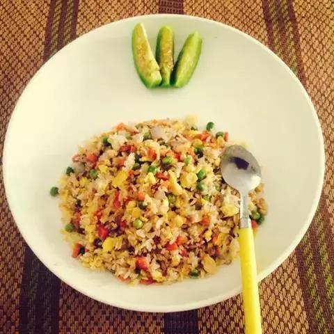 米是五谷之首,米饭更是人们日常饮食中的主角之一;一味米饭,与五味调配,几乎可以供给全身所需营养。米饭的主要成分是碳水化合物,米饭中的蛋白质主要是米精蛋白,氨基酸的组成比较完全,人体容易消化吸收。糙米饭中的矿物质、膳食纤维、B族维生素(特别是维生素B1)含量都较精米米饭中的要高。 酱油炒饭