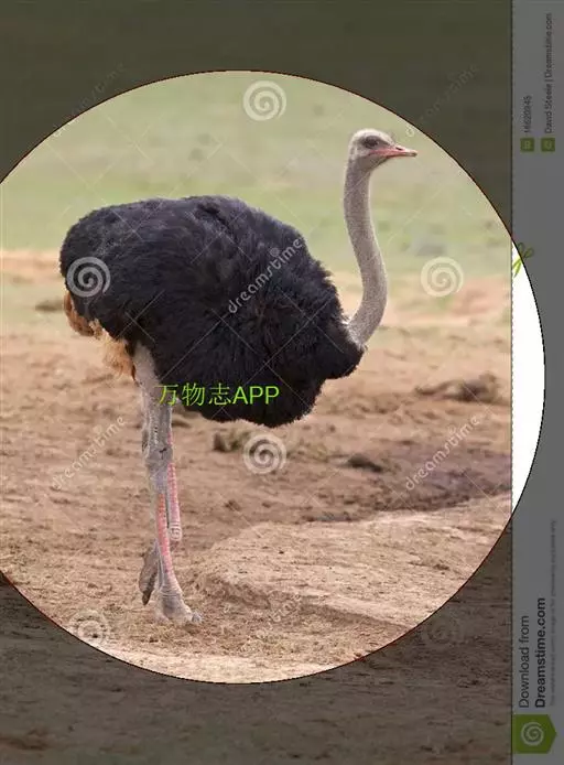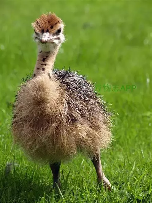 非洲鸵鸟(学名:Struthio camelus)属鸵形目鸵鸟科,是世界上最大的一种鸟类,成鸟身高可达2 .5米,雄鸵鸟体重可达150千克。像蛇一样细长的脖颈上支撑着一个很小的头部,上面有一张短而扁平的、由数片角质鞘所组成的三角形的嘴,主要特点是龙骨突不发达,不能飞行,也是世界上现存鸟类中唯一的二趾鸟类,在它双脚的每个大脚趾上都长有长约7厘米的危险趾甲,后肢粗壮有力,适于奔走。
