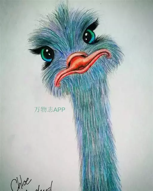 趾仅存2枚,即第三趾和第四趾,是鸟类中趾数最少的,第三趾强大而且具爪,第四趾小而无爪。在羽小枝上没有小钩,所以全身的体羽柔软而蓬松。雄鸟和雌鸟的羽色有所不同,雄鸟的体羽主要为黑色,双翅及尾部的尖端有白色的漂亮长羽,颈部呈肉红色或鲜蓝色,上面覆有棕色绒羽,雌鸟的体羽均呈灰褐色。 [2-3]