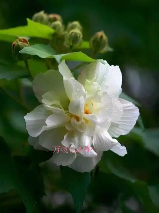 木芙蓉(Hibiscus mutabilis Linn.)又名芙蓉花、拒霜花、木莲、地芙蓉、华木,原产中国。其喜温暖、湿润环境,不耐寒,忌干旱,耐水湿。对土壤要求不高,瘠薄土地亦可生长。为锦葵科、木槿属落叶灌木或小乔木。花于枝端叶腋间单生。花、叶均可入药,有清热解毒,消肿排脓,凉血止血之效。木芙蓉还是成都市市花,其花语为纤细之美,贞操,纯洁。