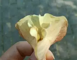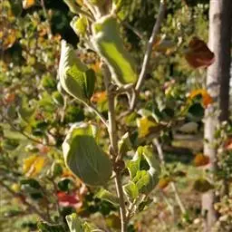 木芙蓉 蒴果扁球形,直径约2.5厘米,被淡黄色刚毛和绵毛,果爿5;种子肾形,背面被长柔毛。