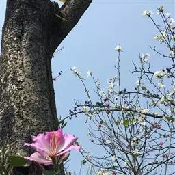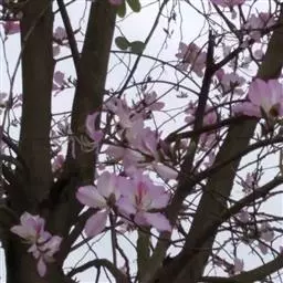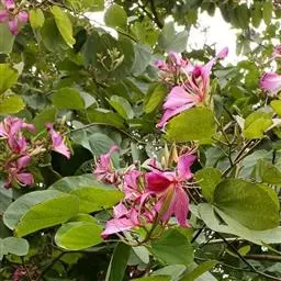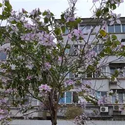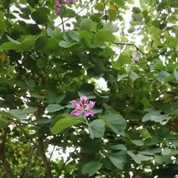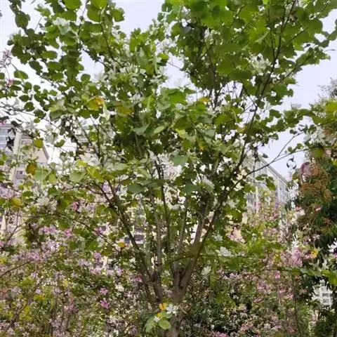 洋紫荆:落叶乔木;树皮暗褐色,近光滑;幼嫩部分常被灰色短柔毛;枝广展,硬而稍呈之字曲折,无毛。叶近…