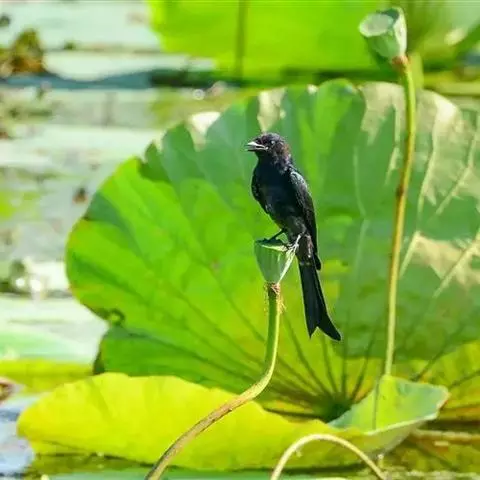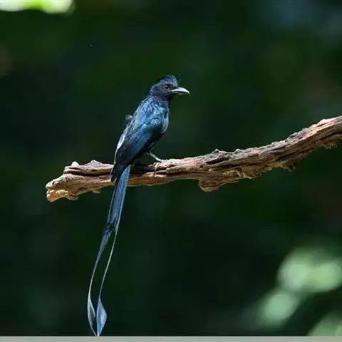 发冠卷尾(学名:Dicrurus hottentottus)是中型鸟类,体长28-35厘米。通体绒黑色缀蓝绿色金属光泽,额部具发丝状羽冠,外侧尾羽末端向上卷曲。栖息于海拔1500米以下的低山丘陵和山脚沟谷地带,多在常绿阔叶林、次生林或人工松林中活动。单独或成对活动,很少成群。主要在树冠层活动和觅食,树栖性。主要以金龟甲、金花虫、蝗虫、蚱蜢、竹节虫、椿象、瓢虫、蚂蚁、蜂、蛇、蜻蜓、蝉等各种昆虫为食。分布于中国、印度、缅甸、老挝、泰国、越南、中南半岛、菲律宾和印度尼西亚。