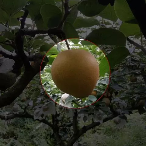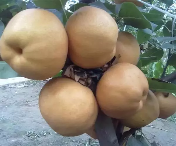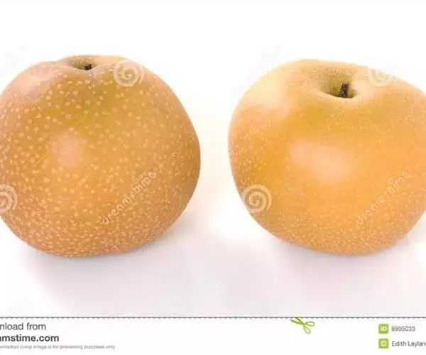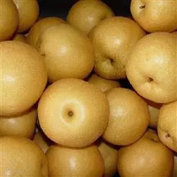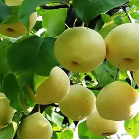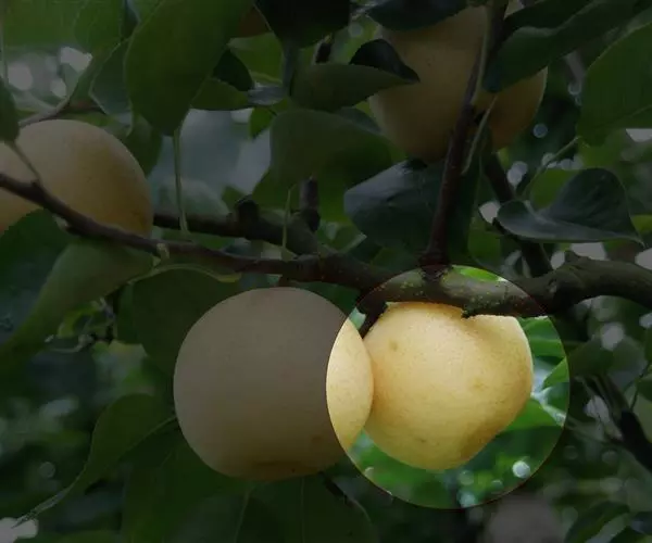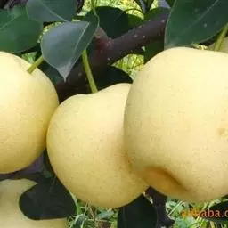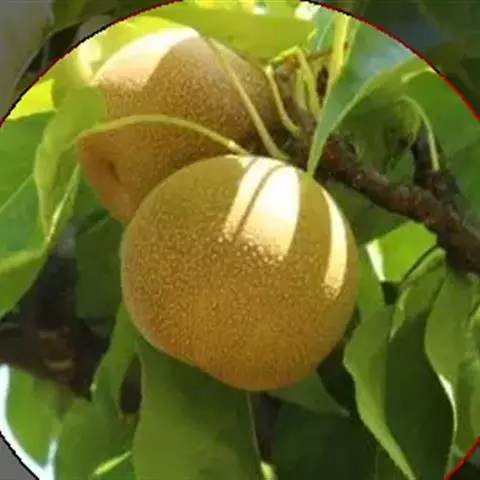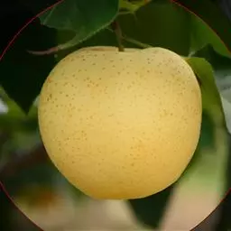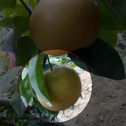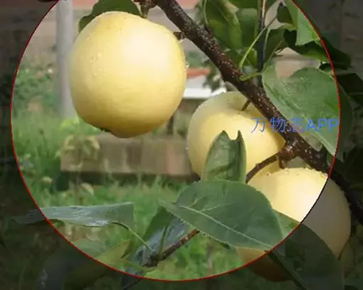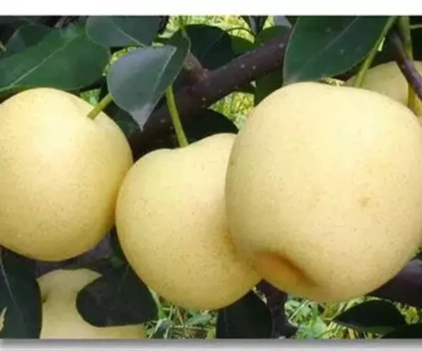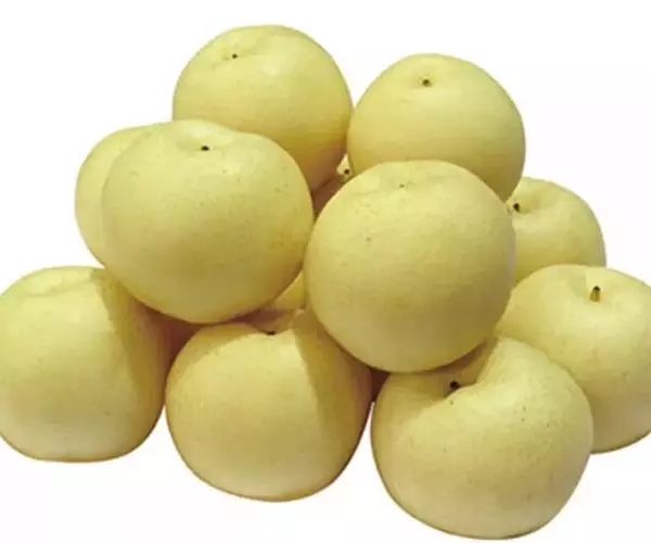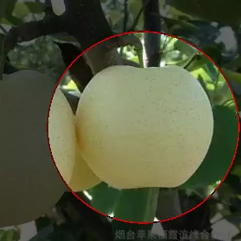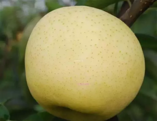 果实性状:果实近圆形或稍扁,平均单果重250克,大果重500克。不套袋果果皮黄绿色,贮藏后变为金黄色。套袋果果皮淡黄色,果面洁净,果点小而稀。果肉白色,肉质脆嫩,多汁,石细胞少,果心极小,可食率达95%以上,不套袋果可溶性固形物含量14%~16%,套袋果12%~15%,风味甜。果实9月中下旬成熟,果实发育期129天左右。较耐贮藏。