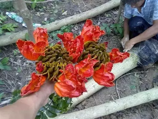 又因其花朵形似郁金香,故英文名意为郁金香树。在热带非洲,其花朵可储存雨水或露水,故称之喷泉树。
